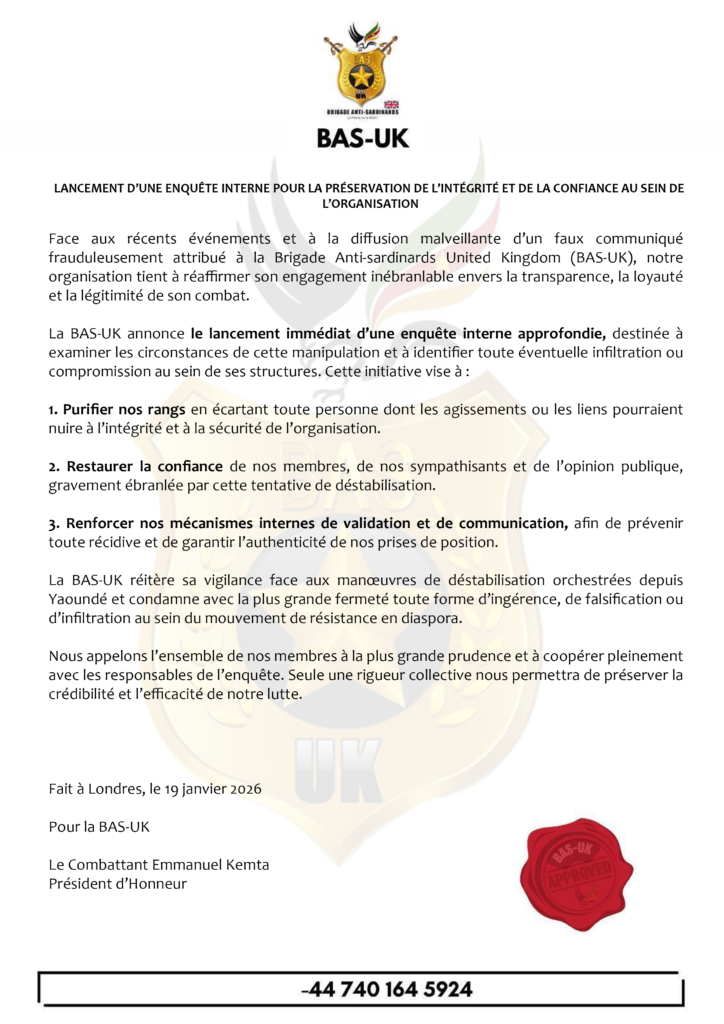 LANCEMENT D’UNE ENQUÊTE INTERNE POUR LA PRÉSERVATION DE L’INTÉGRITÉ ET DE LA CONFIANCE AU SEIN DEL’ORGANISATION By Emmanuel Kemta | January 19, 2026 | Interne | No Comments